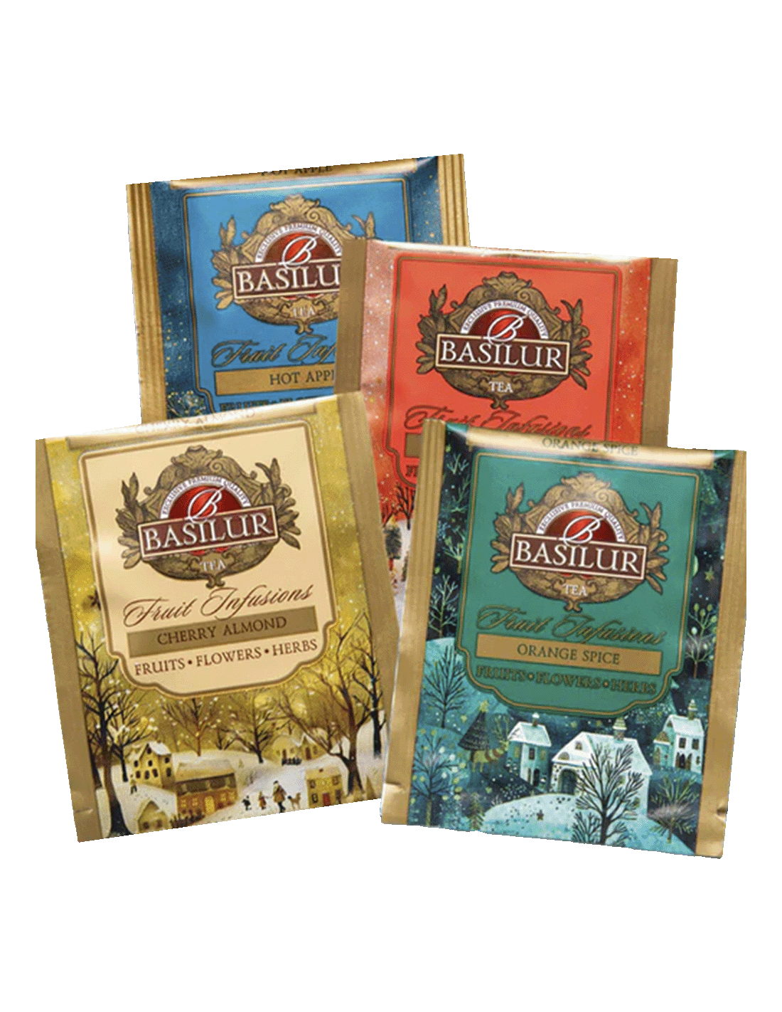 "El Set Regalo Fruit Infusions Festivo es su mejor aliado para la temporada alta. Un set de lujo de 4 infusiones de frutas sin cafeína, ideal para la venta en tiendas gourmet y regalos corporativos.