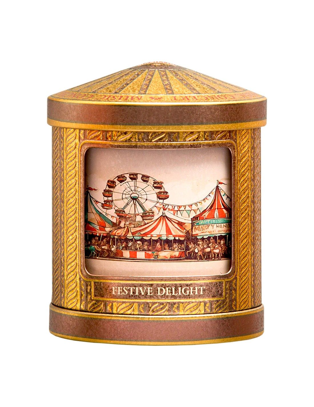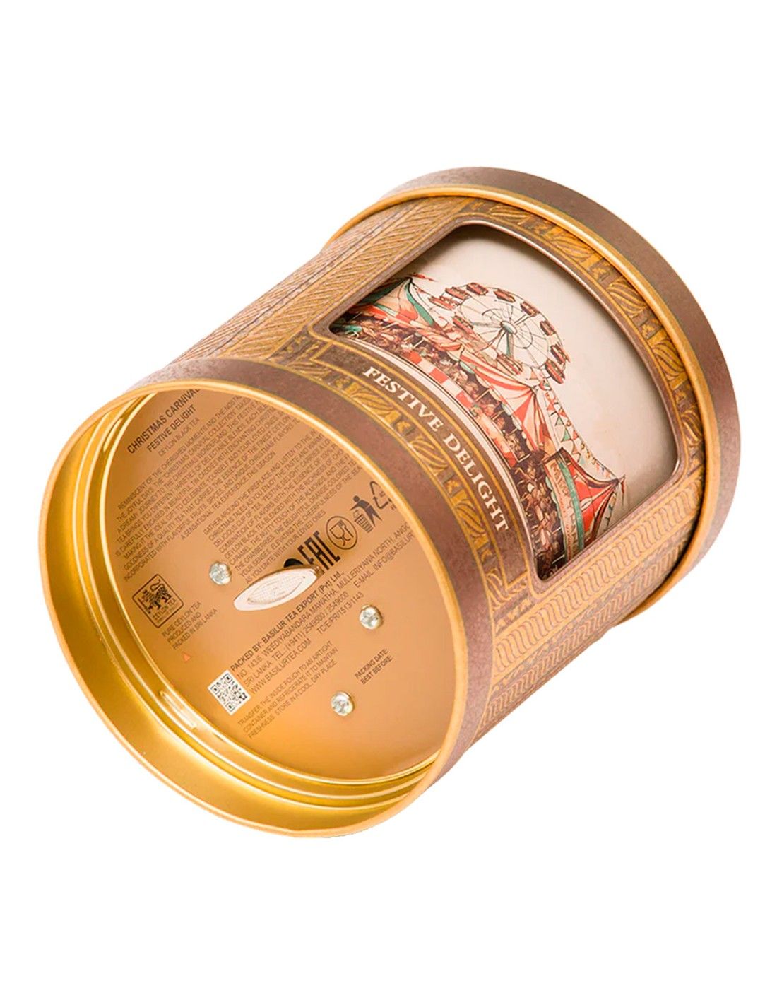 El elaborado empaque es tan cautivador como la infusión. La lata metálica es una espectacular caja de música que, al darle cuerda, reproduce una agradable melodía festiva, convirtiéndola en un regalo que perdura.